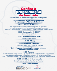 O evento acontece no dia 30 de janeiro, a partir das 08:00 e envolverá palestras sobre a temática da saúde mental.