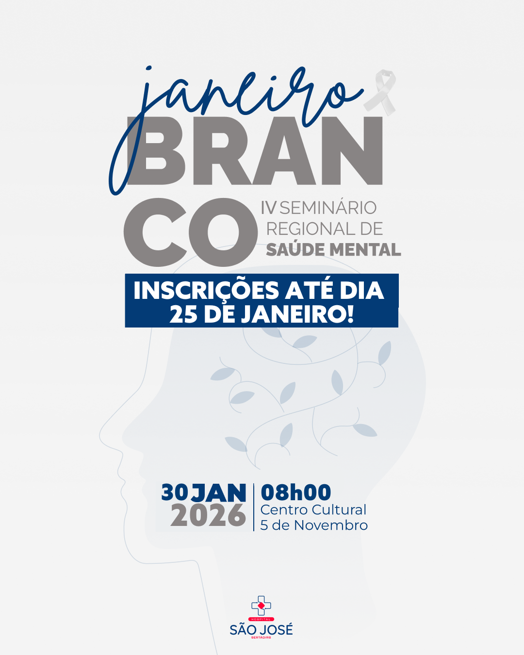 O evento acontece no dia 30 de janeiro, a partir das 08:00 e envolverá palestras sobre a temática da saúde mental.